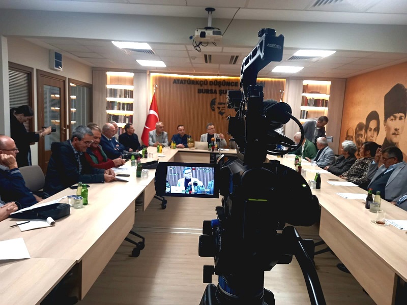 Atatürk'çü Düşünce Derneği Genel Başkan Yardımcısı, Bursa Şube Başkanı Gürhan Akdoğan, "Çağrımız ile son günlerde alenen Cumhuriyetimizin bölünmez bütünlüğünü hedef alan söylemler konularında; ADD Orhangazi Şube Başkanı İsmail Saidoğlu, ADD Karacabey Şube Başkanı Haluk Aka, ADD Kestel Şube Başkanı Ramazan Kestane, ile Birleşik Kamu -İş İl Temsilcisi Engin Yurdakul, ADD Bilim Kurulu Üyesi Tahir Baştaymaz ve 29 Ekim Kadınları Derneği katılımları ile ulusal gündemi değerlendirmek için toplanan temsilciler adına Atatürk'çü Düşünce Derneği Genel Başkan Yardımcısı, Bursa Şube Başkanı Gürhan Akdoğan, "10 Kasım Atatürk'ü anma gününün, ara tatile getirilmesine tepkimizi ifade ediyoruz" dedi.