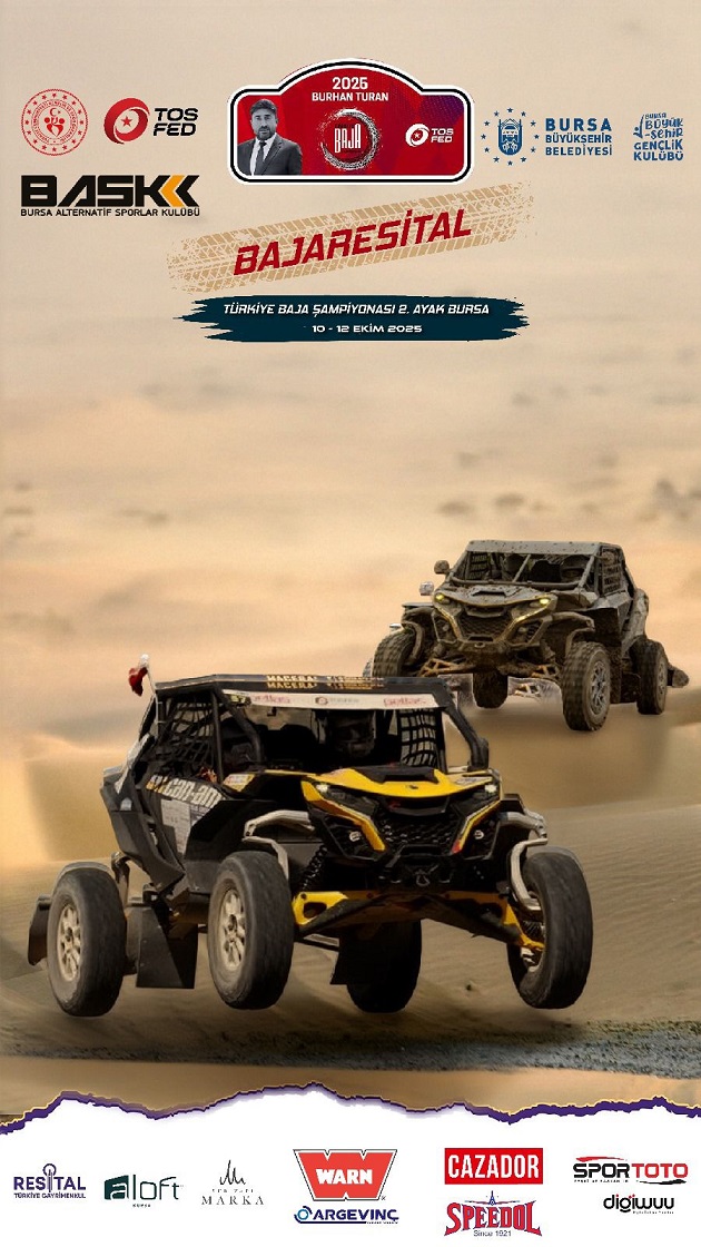 Burhan Turan 2025 Türkiye Baja Şampiyonası'nın ikinci ayağı olan Baja Resital, 10-11-12 Ekim 2025 tarihlerinde Bursa Alternatif Sporlar Kulübü (BASK) tarafından, Resital Türkiye Gayrimenkul ana sponsorluğu ve Bursa Büyükşehir Belediyesi'nin katkılarıyla Bursa'da gerçekleştirilecek.