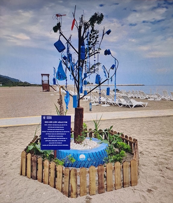 Karacabey Kurşunlu Halk Plajı’ndaki temizlik çalışmasında toplanan çöp ve atıklar, vatandaşlar tarafından boyanarak geri dönüşüm temalı çöp ağacına dönüştürüldü. Atıl durumda terkedilmiş bisikletler ise ekipler tarafından alınarak atölyelerde tamir edilip boyanarak tekrar kullanılabilir hale getirildi.