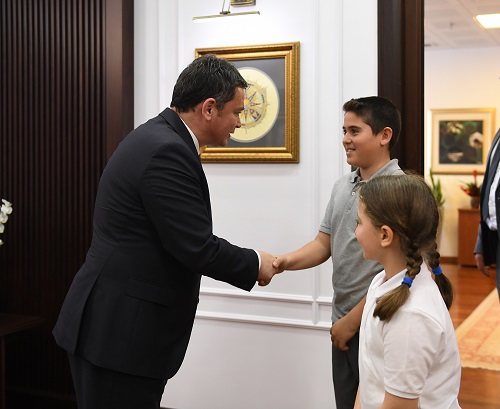 Küçük konuklarını kapıda karşılayan Başkan Aydın, büyük bir mutlulukla makamının koltuğunu çocuklara devretti. Başkanlık koltuğuna ilk olarak 10 yaşındaki Zeynep Aktaş oturdu. Tüm dünya çocuklarının 23 Nisan Ulusal Egemenlik ve Çocuk Bayramı’nı kutlayarak sözlerine başlayan çocuk başkan Aktaş, kendilerine böyle güzel bir bayram armağan eden Büyük Önder Mustafa Kemal Atatürk’e de şükranlarını sundu. Başkan olarak ilk talimatlarını dile getiren Aktaş, “Okullardaki zeminler kaygan olabiliyor. Kendi okulum ve diğer tüm okullardaki kaygan zeminlerin değiştirilmesini istiyorum. Spor tesislerinin sayılarının arttırılması gerekiyor. Hayvanlara şiddet uygulayanlara verilen cezaların arttırılmasını düşünüyorum. Her sokağa sokak hayvanları için mama ve su kapları bırakılsın. Okullara öğrencileri korumaları için güvenlikler konulmasını ve okul bahçelerine parklar yapılasını istiyorum. En önemli isteğim de durumu olmayan kişilere yardımlarda bulunulmalı ve erzak paketleri dağıtılmalı” diye konuştu.