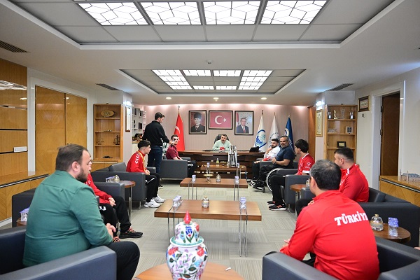 Katıldıkları uluslararası turnuvalarda ülkemizi ve Yıldırımı gururlandıran Toprak Aras, Yusuf İslam Kara, Batın Naniş ve Enes Gezer’i makamında ağırlayan Yıldırım Belediye Başkanı Oktay Yılmaz, başarılı sporcuları tebrik etti. Yıldırım’ın spor kenti kimliğini güçlendirmek için çalıştıklarını vurgulayan Başkan Oktay Yılmaz; “Gerek tesisleşme hamlemiz gerekse de spor kurslarımız ve eğitimlerimizle Yıldırım’ı adeta bir spor kentine çevirdik. Hamdolsun bu yatırımlarımız da meyvelerini veriyor. Sporcularımız katıldıkları ulusal ve uluslararası turnuvalarda ülkemizi ve bizleri gururlandıran önemli başarılara imza atıyorlar. Bu başarılar eminim ki, çocuklarımıza ve gençlerimize ilham