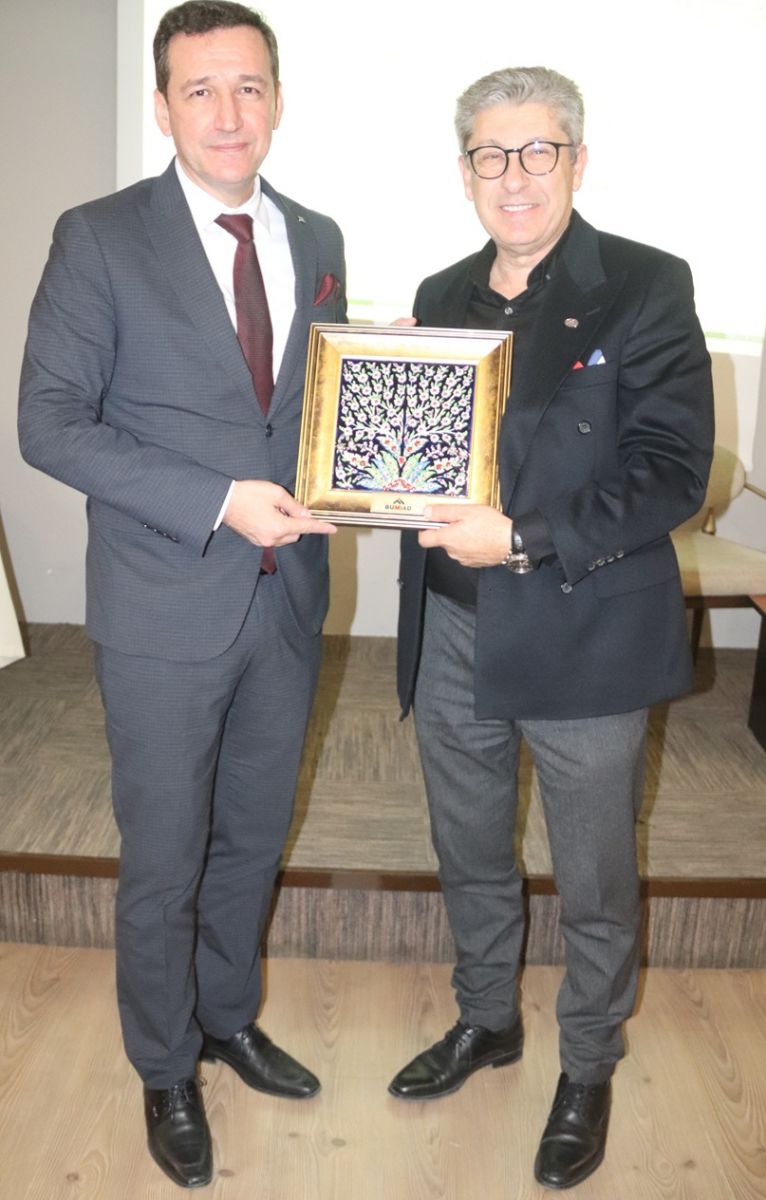 Katılımcıların sorularının cevaplandırılmasından sonra BUMİAD Başkanı Mustafa Gümüş, konuk konuşmacı YMM Bülent Fıçıcı’ya teşekkür plaketi takdim etti.