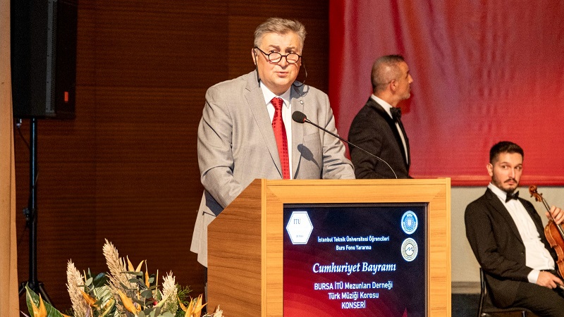 Gecenin açılış konuşmasını yapan Bursa İTÜ Mezunları Derneği Başkanı Hasan Tuğcu, tüm konuklara katılımlarından dolayı teşekkür ederek Cumhuriyetin 102. yılını kutladı. Cumhuriyetin kuruluş mücadelesinin önemine dikkat çeken Tuğcu “Milletimiz, 200 yıllık acı dolu geri çekilmesinin sonunda eşi benzeri görülmemiş bir zafere imza atmıştır. Cumhuriyet, ekonomisi ve kurumları çökmüş, aydınlarını ve gençlerini kaybetmiş bir memleket üzerine bir umut olarak kurulmuş, kimsesizlerin kimsesi olmuştur.” dedi.