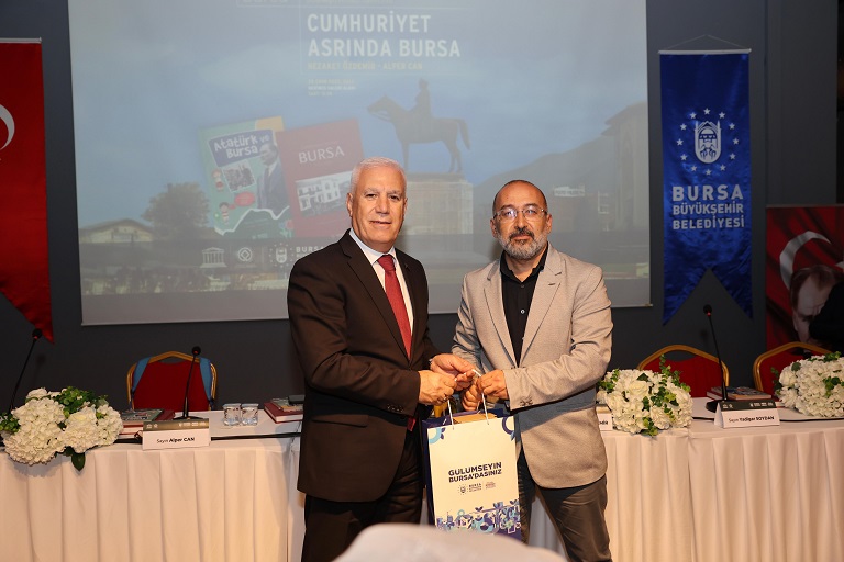 Konuşmanın ardından program, ‘Cumhuriyet Asrında Bursa’ kitabının yazarları Nezaket Özdemir ve Alper Can ile ‘Atatürk ve Bursa’ kitabının yazarları Deniz Dalkılınç ve Yadigar Soydan’ın konuşmacı olduğu söyleşiyle devam etti.