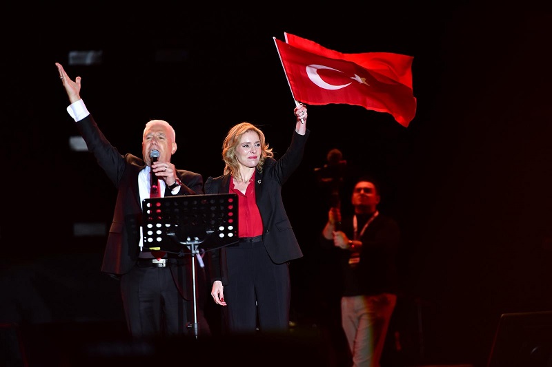 Bursa Büyükşehir Belediyesi ve Nilüfer Belediyesi’nin birlikte düzenlediği Cumhuriyet Bayramı kutlamaları, DJ performansı devam etti. Müziğin ritmine kendini bırakan yüz binlerce Bursalı, telefon ışıklarıyla alanda adeta görsel şölen yaşattı. Ünlü sanatçı Edis’in sahneye çıkmasıyla da coşku doruğa çıktı. Edis’in muhteşem sahne performansı, bayram coşkusu yaşayanlara keyifli anlar yaşattı. Bursalıların birçok parçasına eşlik ettiği Edis’e, gecenin sonunda Bursa Büyükşehir Belediye Başkanı Mustafa Bozbey ve Nilüfer Belediye Başkanı Şadi Özdemir, Atatürk posteri, İznik çinisi ve çiçek vererek teşekkür etti.