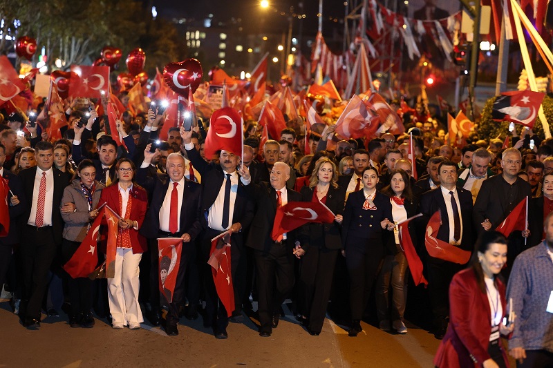 Başkan Mustafa Bozbey ve Başkan Şadi Özdemir, yürüyüş öncesi ortak açıklama yaptı. Cumhuriyet’i alanlarda kutladıklarını ve alanlarda sahip çıktıklarını belirten Başkan Bozbey, “102 yıl önce Ulu Önder Gazi Mustafa Kemal Atatürk ve arkadaşları, Cumhuriyeti gençlere emanet ederek yola çıktılar. Bizler de onların izinde Cumhuriyetimize sahip çıkmaya devam edeceğiz. Cumhuriyet Bayramımız, bizim en büyük bayramımızdır. Bu bayramı alanlarda Cumhuriyet sevdalılarıyla birlikte kutluyoruz. Yaşasın Cumhuriyet! Yaşasın Atatürk! Yaşasın tam bağımsız Türkiye! 29 Ekim Cumhuriyet Bayramımız kutlu olsun” dedi.