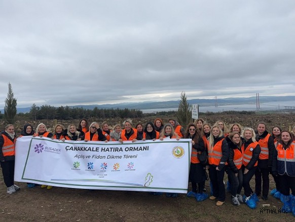 BUSADER Federasyon Başkanı Zerrin Özgüle, Çanakkale Orman İşletme Müdürü Enver Demirci, Bursa BUSADER, İstanbul BUSADER ve Sanart BUSADER başkanları ile üyelerinin hazır bulunduğu fiden dikme töreni şölen havasında geçti.,