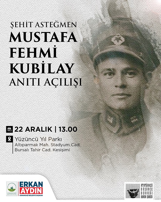 Osmangazi Belediyesi, Cumhuriyet değerlerine sahip çıkma kararlılığını bir kez daha ortaya koyarak, Şehit Asteğmen Mustafa Fehmi Kubilay’ın hatırasını yaşatmak için anlamlı bir anıt açılışına ev sahipliği yapacak.