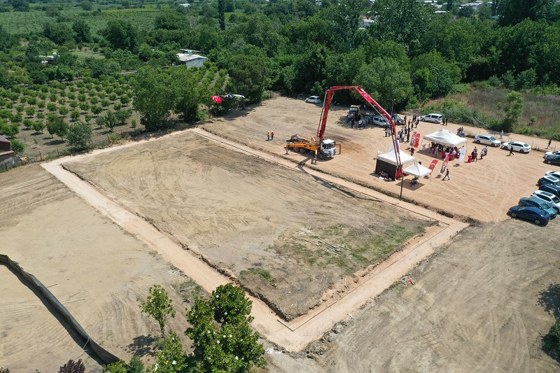 Konuşmaların ardından Başkan Aydın ve protokol üyeleri tarafından Çukurca Spor Tesisi inşaatının temeline ilk harç döküldü.
