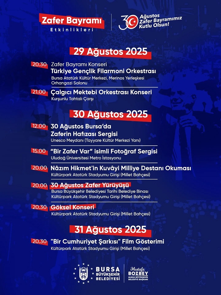 Bursa Büyükşehir Belediyesi 30 Ağustos Zafer Bayramı etkinlikleri: