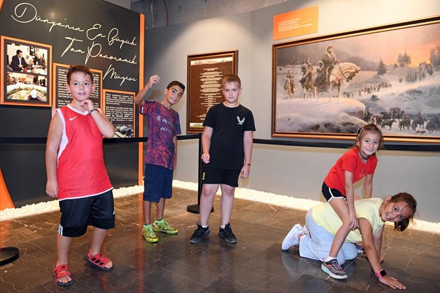 Müze gezisinin sonunda 3 boyutlu panoramaya ulaşan çocuklar, tarihin izlerini edebiyatla birleştirerek farklı bir bakış açısı kazandı.