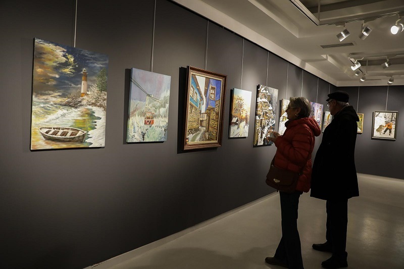 Ressamlar Çalışma Grubu bünyesinde sanat faaliyetlerini sürdüren 50 sanatçıya ait 73 eserin yer aldığı sergi, 30 Ocak tarihine kadar ziyaret edilebilecek.
