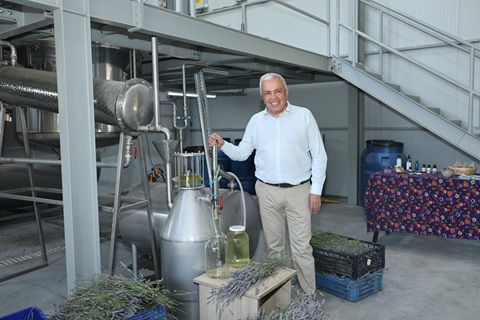 Hasadın ardından Nilüfer Tıbbi ve Aromatik Bitki İşleme Tesisi’ni de ziyaret eden Başkan Şadi Özdemir, lavantanın distilasyon süreci ve elde edilen ham maddelerden üretilen ürünler hakkında yetkililerden bilgi aldı.