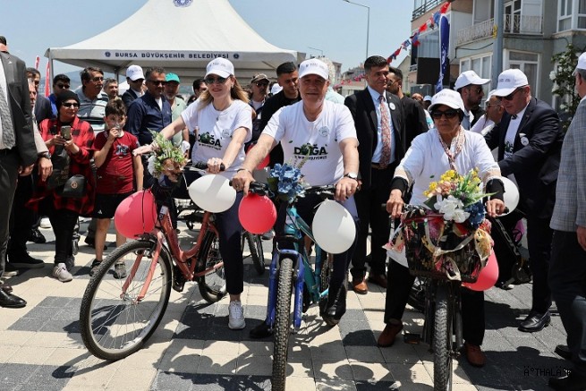 Bursa Büyükşehir Belediye Başkanı Mustafa Bozbey ve eşi Seden Bozbey, Süslü Bisikletler Şenliği’ne katılarak pedal çevirdi. Balon, çiçek ve oyuncaklarla bisikletlerini süsleyen vatandaşlar, daha temiz bir çevre istediklerini renkli görüntülerle anlattı.