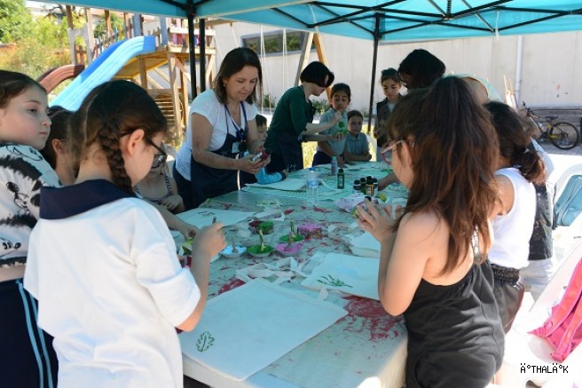 Etkinlikte çocuklar, çevre dostu malzemelerle sabun yapımı, çanta baskı ve karikatür olmak üzere üç farklı atölyede yer aldı. Öğrenciler atölyelerde çevreci ürünlerle çanta ve sabun yapımı öğrendiler. Karikatür atölyelerine katılan çocuklar, çevre duyarlılıklarını çizimleriyle ifade ettiler.