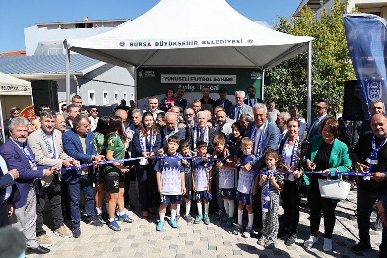 Marmara Belediyeler Birliği ve Bursa Büyükşehir Belediye Başkanı Mustafa Bozbey, 4 ay önce verdikleri sözü yerine getirmenin mutluluğunu yaşadıklarını söyledi. Kültür, sanat ve sporun olmazsa olmazlar arasında olduğunu belirten Başkan Bozbey, “Seçim döneminde ve seçimden sonra Yunuseli’ye yaptığımız ziyaretlerde gençler etrafımızı sarmıştı. ‘Bizim burada oynayacak bir yerimiz yok. Biz cadde ve sokaklarda top oynuyoruz. Bize de kızıyorlar ve oynatmıyorlar’ dediler. Muhtarımızla bir araya geldik ve ‘Acilen burada yer bulalım. Çocuklarımız sokaklarda değil, çim sahada ve tesisi olan bir yerde oynasınlar’ istedik. Hem dostluklar kuracakları hem sosyal ilişkiler kuracakları hem de aileleriyle güzel zaman geçirebilecekleri bir alan oluşturmak istedik. Bugün tesisi açmanın mutluluğunu gençlerimizle birlikte yaşıyoruz” diye konuştu.