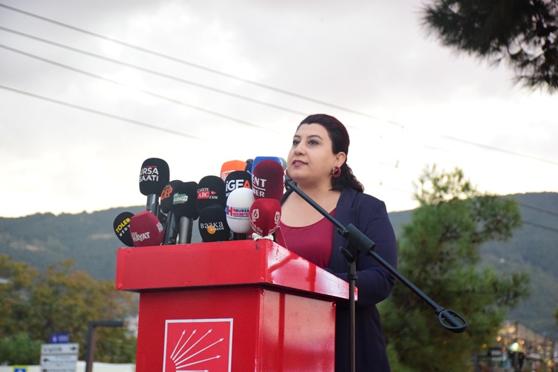 CHP Bursa İl Başkanı Nihat Yeşiltaş'ın Ankara'da Genel Merkezde olmasından dolayı basın açıklamasını CHP Bursa İl Sekreteri Yasemin Reçber okudu.