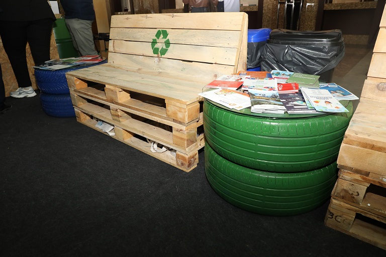 Bursa Büyükşehir Belediyesi Park ve Bahçeler Dairesi Başkanlığı’nın Marmara Denizi’nden çıkartılan ve sahillerdeki temizlik çalışmalarında toplanan atıklarla hazırladığı geri dönüşüm sergisi de yerli ve yabancı konuklar tarafından büyük ilgi gördü. Araba lastikleri, plastik şişeler, paletler ve terk eşyalarla hazırlanan sergi, insanların doğaya karşı ne kadar acımasız davrandığını bir kez daha gözler önüne serdi.