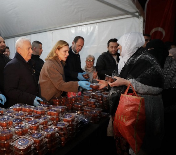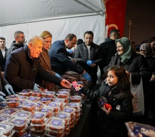 Bursa Büyükşehir Belediyesi, kent genelindeki 21 farklı camide Miraç Kandili dolayısıyla vatandaşlara tatlı ikram ederken, Bursa Büyükşehir Belediye Başkanı Mustafa Bozbey de eşi Seden Bozbey ile birlikte Emirsultan Cami’nde Bursalılarla bir araya geldi.