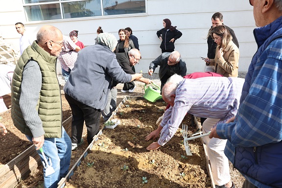 Nilüfer Belediyesi Kırsal Hizmetler Müdürlüğü tarafından organize edilen etkinlikte, huzurevi sakinleri bahçede kendileri için hazırlanan alanda fide ve tohumları toprakla buluşturdu.