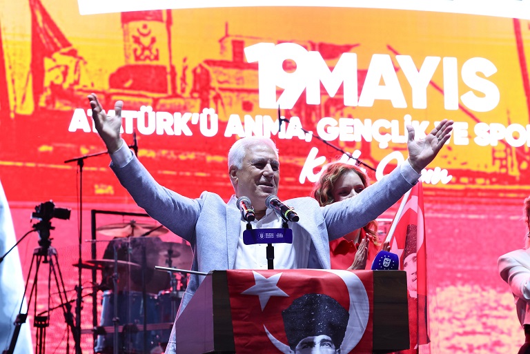 Mor ve Ötesi konserinin öncesinde Gençliğe Hitabe ve Gençlik Meclisi Bildirisi okundu. Daha sonra eşi Seden Bozbey ile birlikte sahneye çıkan Başkan Mustafa Bozbey, alanı dolduran yaklaşık 100 bin kişiyi selamlayarak gençlerin bayramını kutladı. Konuşmasına "Gençler, ne kadar güzelsiniz. Harikasınız gençler" diyerek başlayan Başkan Bozbey, "Geldikleri gibi giderler" diyerek milletine umut olan Ulu Önder Gazi Mustafa Kemal Atatürk’ün, Anadolu’da yaktığı bağımsızlık ateşinin 106. yılını kutladıklarını söyledi. Bir milletin küllerinden yeniden doğduğu, özgürlüğün adını yüksek sesle haykırdığı günde bulunduklarını belirten Başkan Bozbey, 19 Mayıs’ın bağımsızlığa yürüyüşün, umuda tutunmanın ve geleceğe inancın simgesi olduğunu ifade etti. 106 yıl önce karanlıktan aydınlığa, esaretten özgürlüğe, saltanattan ulusal egemenliğe ilk adımın atıldığını dile getiren Başkan Bozbey, “Kolay olmadı. Bu toprakları işgalden kurtarıp Cumhuriyet’e ulaştırmak; sadece bir savaş kazanmak değil, aynı zamanda bir halkın kaderini değiştirmekti. Cesaret istiyordu. İnanç istiyordu. Umut istiyordu. Ancak biz başardık. Bir halk olarak, bir millet olarak, Atamıza olan inancımızla başardık. Umudumuzu yitirmedik. Yılmadık. Direndik. Ve sonunda Cumhuriyet’imizi kurduk” dedi.