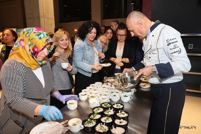 ve Bitki Besleme Bölümü Öğretim Üyesi Prof. Dr. Barış Bülent Aşık, “Evsel Atıklardan Kompost Gübre Nasıl Yapılır? konularında sunum gerçekleştirdi. Şef Ali Özal ise “Mutfakta Sürdürülebilir Çözümler” hakkında konuştu ve “Vardabit Paçası” isimli yemeği yaparak, konuklara ikram etti.
