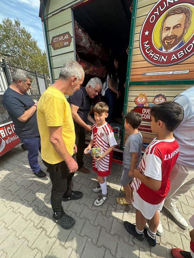 Yıllardır gönüllü olarak Türkiye’nin çeşitli şehirlerindeki köylere giderek çocuklara oyuncaklar armağan eden Muhsin Şaşmaz, dün de Bursa Gazeteciler Cemiyeti’nin Yürütme Kurulunda temsil edildiği Osmangazi Kent Konseyi organizasyonuyla Zafer Mahallesi’ndeydi.