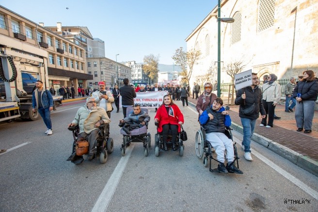 Dünya Engelliler Günü kapsamında ‘Engelli Farkındalık Yürüyüşü’ düzenlendi. Ulu Cami önünde bir araya gelen özel gereksinimli bireylere Bursa Büyükşehir Belediye Başkanı Mustafa Bozbey’i temsilen Büyükşehir Belediyesi Genel Sekreter Yardımcısı Mehmet Yıldız, Bursa Vali Yardımcısı Mustafa Güney, Bursa Kent Konseyi Başkanı Prof. Dr. Ertuğrul Aksoy, sivil toplum kuruluşlarının temsilcileri ve vatandaşlar eşlik etti.