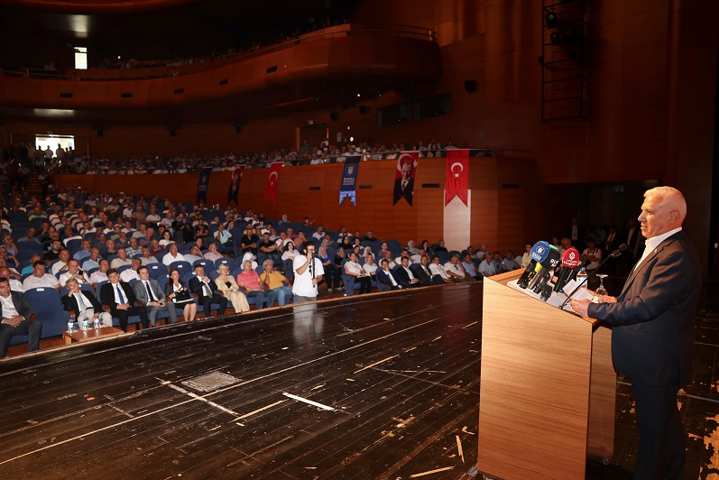 Karşı karşıya kalınan susuzluk tehdidine de değinen Başkan Bozbey, ‘’Büyük bir tehlike altındayız. Önümüzdeki yıllarda sulama ile ilgili planlarımızın tümünü gözden geçirmemiz gerekecek. Belki de suya daha az ihtiyaç duyan ürünlere yönelmemiz gerekecek. Günümüzde su çok kıymetli bir değer haline geldi. Gelecek nesillere temiz, verimli ve sürdürülebilir bir tarım altyapısı bırakmak istiyorsak, sulamada tasarrufu bugünden hayatımızın merkezine almak zorundayız. Çünkü ürettiğimiz kadar, korumakla da sorumluyuz’’ şeklinde konuştu.