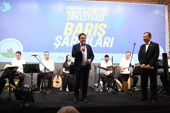 Osmangazi Belediyesi tarafından düzenlenen 1 Eylül Dünya Barış Günü konserinde, Osmangazi Dünya Müzikleri Orkestrası sahne aldı. 'Barış Şarkıları’ adını taşıyan konserde, Türkçe'nin yanı sıra İngilizce, Boşnakça, Lübnanca ve Azerice şarkılar barış dolu bir dünya için seslendirildi. Ördekli Kültür Merkezi'nin ev sahipliği yaptığı konsere, Osmangazi Belediye Başkanı Erkan Aydın, CHP Osmangazi İlçe Başkanı Cengiz Çelikten, Osmangazi Belediye Başkan Yardımcıları Mutlu Esendemir ve Tolga Kornoşor, belediye meclis üyeleri ve davetliler katıldı.