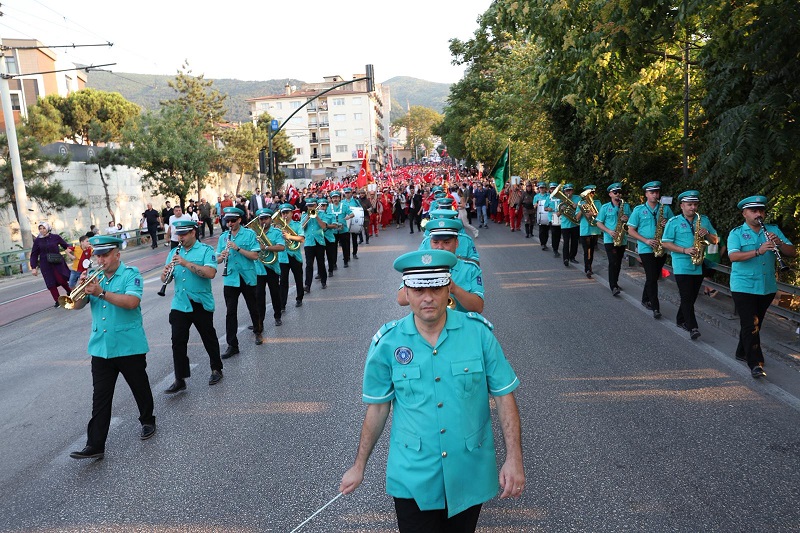 15 Temmuz Demokrasi ve Milli Birlik Günü etkinlikleri kapsamında Bursa Valiliği’nin koordinasyonunda demokrasi ve bayrak yürüyüşü düzenlendi. Atatürk Heykeli önünden başlayıp 15 Temmuz Demokrasi Meydanı’nda sona eren yürüyüşe, Vali Erol Ayyıldız ve Büyükşehir Belediye Başkanı Mustafa Bozbey başta olmak üzere Bursa milletvekilleri, ilçe belediye başkanları, şehit yakınları, siyasi parti temsilcileri, askeri erkân, sivil toplum kuruluşlarının temsilcileri ve çok sayıda vatandaş katıldı. Yürüyüşün ardından Demokrasi Meydanı’nda düzenlenen tören, saygı duruşu, İstiklal Marşı’nın okunması, Kuran’ı Kerim tilaveti ve protokol konuşmalarıyla devam etti.