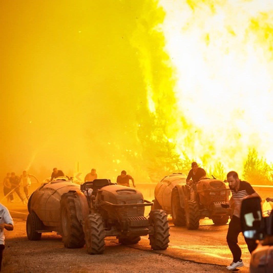 İtfaiye ekiplerinin alevlerle süren savaşına vatandaşlar da tankerleriyle su taşıyarak destek olmaya çalışıyor.