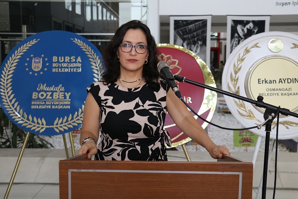 Serginin açılışında konuşan Mimarlar Odası Bursa Şube Başkanı Şirin Rodoplu Şimşek, “İpek, Bursa için çok değerli bir simge ve böylesine anlamlı bir sergiyi BURFOD ile işbirliği yaparak burada sergiliyor olmaktan dolayı çok mutluyuz. Katkısı olan emeği geçen herkese çok teşekkür ediyorum” şeklinde konuştu.