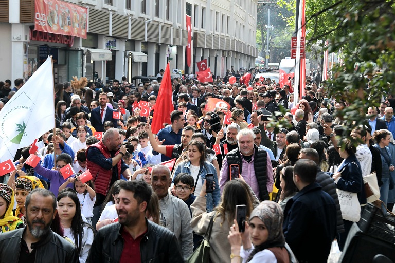 Büyük Önder Mustafa Kemal Atatürk’ün çocuklara armağan ettiği 23 Nisan Ulusal Egemenlik ve Çocuk Bayramı Osmangazi ilçesinde düzenlenen muhteşem bir kortej yürüyüşüyle kutlandı. Zafer Plaza Meydanı’nda vatandaşların yoğun katılımıyla tören düzenlendi.
