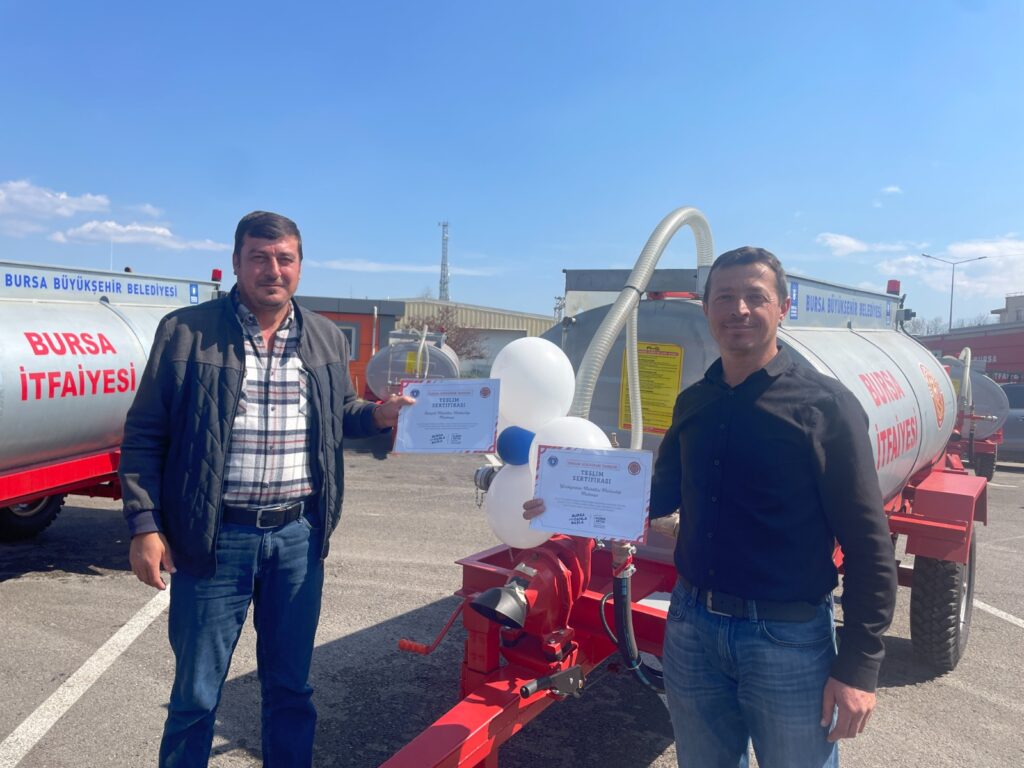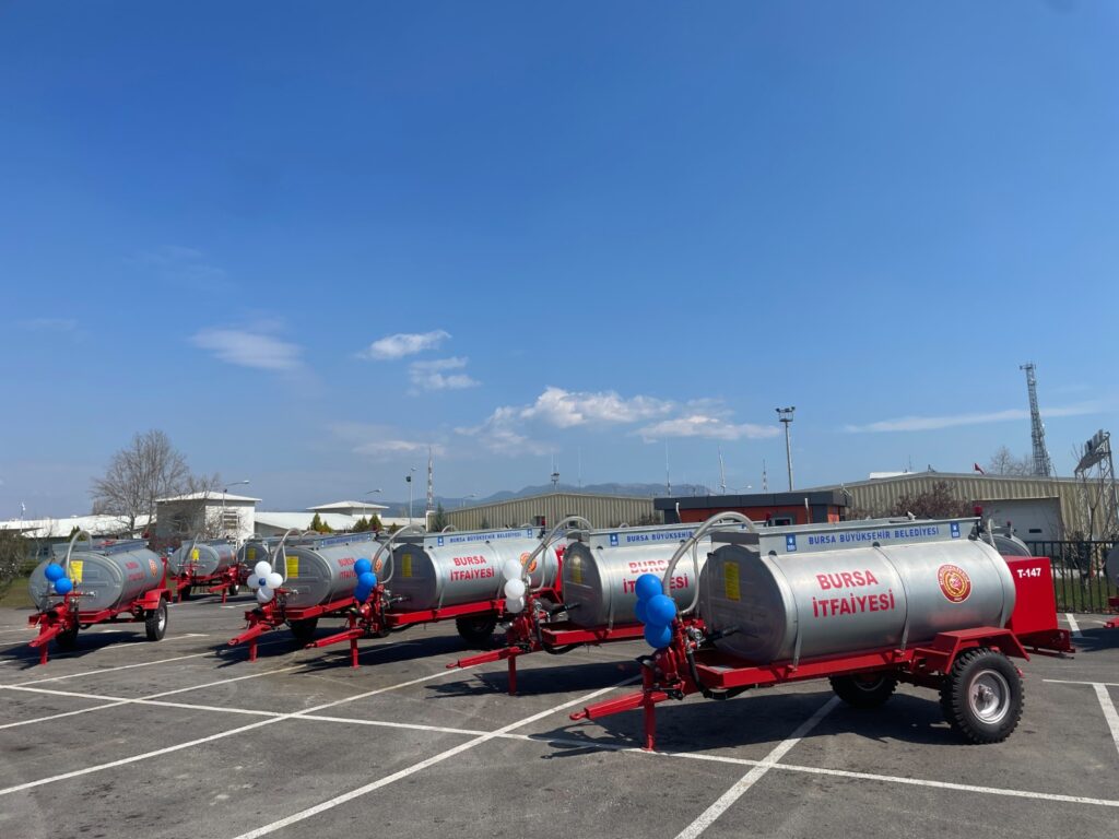 Bursa Büyükşehir Belediyesi halkın can ve mal güvenliğini doğrudan ilgilendiren en önemli hizmetlerden biri olan itfaiye teşkilatını her geçen gün güçlendiriyor. Son olarak, özellikle kırsal mahallelerde olası yangınlara müdahale için alınan 30 adet traktör arkası yangın söndürme su tankeri daha hizmet filosuna dahil edildi.