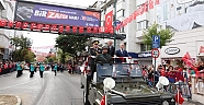 30 Ağustos Zafer Bayramı coşkusu, Bursa’da vatandaşların yoğun ilgisi eşliğinde Valilik, Büyükşehir Belediyesi ve Garnizon Komutanlığı çelenklerinin Atatürk Anıtı’na bırakılmasıyla başladı. Saygı duruşu, İstiklal Marşı’nın okunması ve Türk Bayrağı’nın göndere çekilmesinin ardından Vali Ayyıldız, Başkan Bozbey ve protokol üyeleri, Tarihi Valilik Binası’na geçerek tebrikleri kabul etti. Daha sonra üstü açık araca binen Vali Erol Ayyıldız ve Başkan Mustafa Bozbey, törene katılan vatandaşları selamlayıp, bayramlarını kutladı.