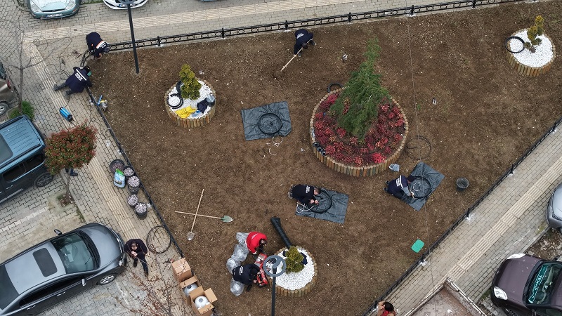 Ayrıca Orhangazi Caddesi ile Çevre Yolu’nun kesişiminde bulunan ışıklı kavşakta da düzenleme çalışmaları sürüyor. Alana yerleştirilecek ahşap süsleme elemanları, renkli taşlar ve mevsimlik çiçeklerle bölgeye estetik bir görünüm kazandırılması hedefleniyor.