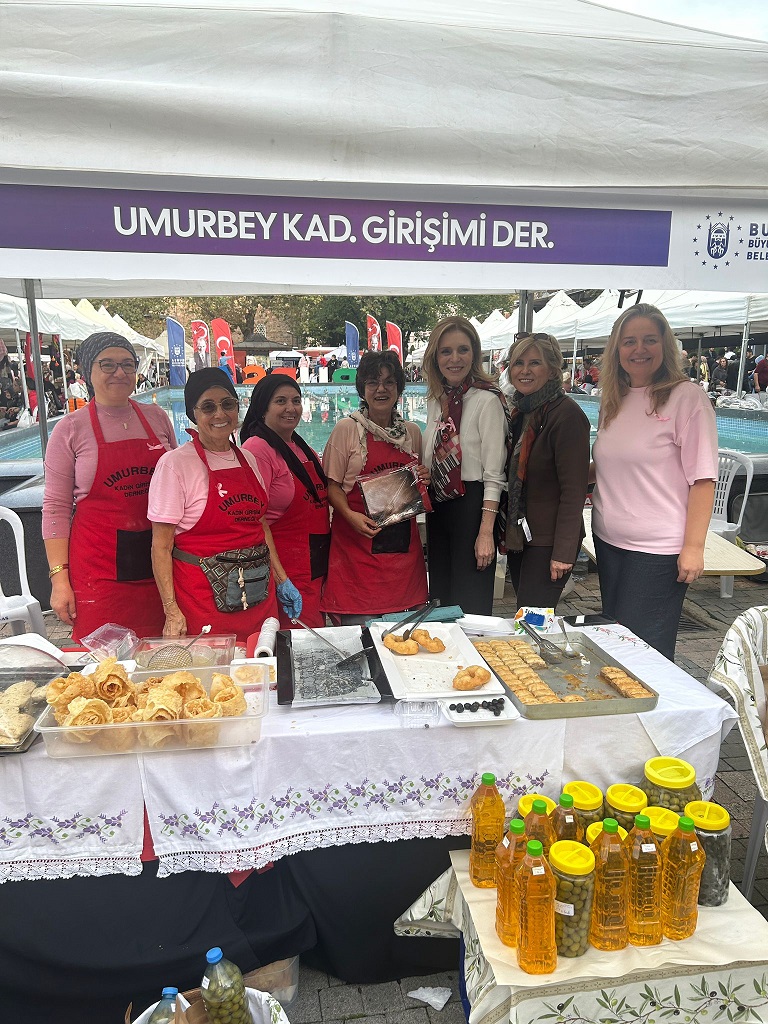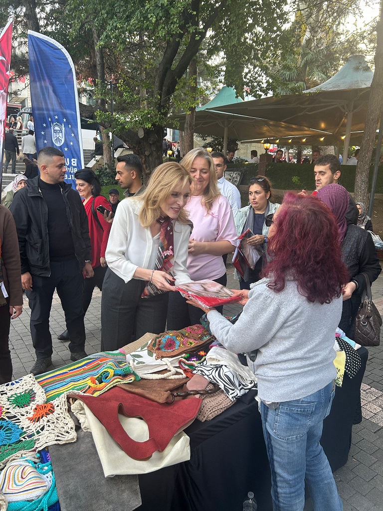 Bursa Büyükşehir Belediye Başkanı Mustafa Bozbey'in eşi Seden Bozbey de etkinliğe katılarak üretici kadınlarla sohbet etti. Kadın kooperatiflerinin ürünlerini yakından inceleyen Seden Bozbey, katılımcılara Ata posteri de dağıtarak Cumhuriyet Bayramı'nı kutladı.