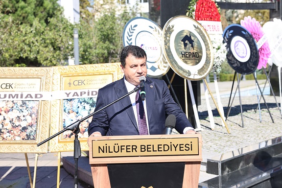 Saygı duruşu ve İstiklal Marşı'nın okunmasının ardından konuşan Nilüfer Belediye Başkanı Şadi Özdemir, “Bugün, bir milletin küllerinden yeniden doğduğu, özgürlüğü, eşitliği ve adaleti temel alan yeni bir yaşamı kurduğu büyük günün yıl dönümündeyiz” dedi.