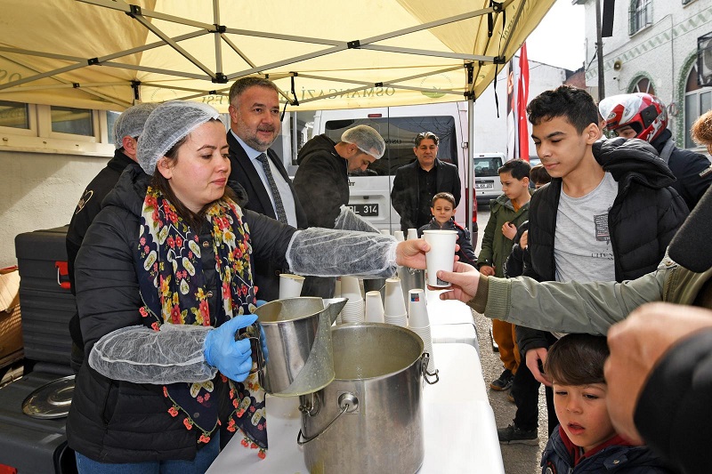 duyguları pekiştirildi. Osmangazi Belediyespor Başkanı Fatih Karayılan ile Osmangazi Belediyesi Meclis Üyesi Özge Kaya tarafından yapılan çorba ikramı, samimi bir atmosferde gerçekleşti.