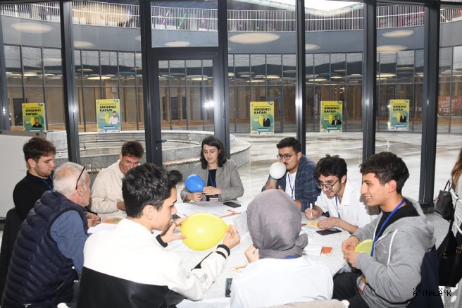 Söyleşinin ardından STK, belediye, kamu, BEBKA, ve özel sektör temsilcileri gençlerle hazırlanan masalarda