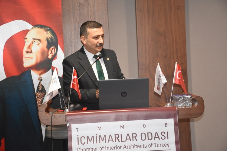 Her bireyin güvenli, estetik, fonksiyonel mekanlarda yaşama hakkı olduğuna vurgu yapan Ali Gözütok, “Bizler engelli bir bireyin hayatını kolaylaştıran o rampa açısını hesaplarken, okullardaki ışık kalitesini belirlerken kamu yararını düşürüyoruz. Kamu sağlığını koruyoruz. İçmimarlık teknik bir disiplindir. Bizler yapı stoğunun içini kullanıcı ihtiyaçlarına göre yeniden inşa eden iç mimarlarız. Yangın yönetmeliğinden akustik konfora sürdürülebilir malzemeden karbon ayak izine kadar birçok detay çözümleyen bir meslek alanıdır iç mimarlık. İçmimarlık kültürel bir mirastır. Bursa gibi tarih kokan bir şehirde eskiyi koruyarak yeniye entegre etmek, mekanın ruhunu yansıtmak biz iç mimarların omuzlarındaki bir sorumluluktur” dedi.