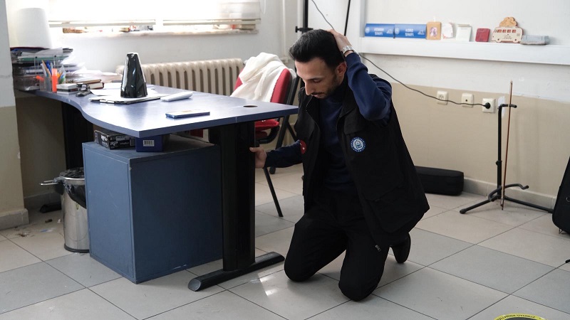 Tatbikat öncesinde ekipler, öğrencilere deprem anındaki doğru davranış modeli, ‘çök- kapan-tutun’ tekniği, güvenli tahliye,